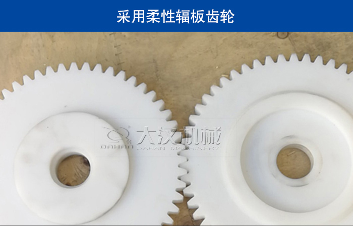 振動篩柔性輻板齒輪來代替鋼齒輪,即在齒輪的輻板上利用橡膠彈性體傳遞扭矩倉壁震動器,吸收齒輪嚙入、嚙出所造成的振動。
