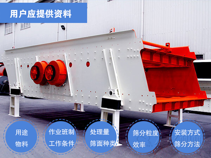 ①篩子的用途。② 物料特征 包括:種類、散密度、水份、顆粒形狀、粒度組成、大給料、粒度、物料粘度。③ 作業班制。④ 處理量。⑤規定粒度及相應的篩分效率。⑥篩分方法(濕篩或干篩)。⑦安裝方式。座或吊式,電機左裝或右裝。⑧希望使用的篩面種類 ⑨希望使用的振動篩種類。⑩ 工作條件:如空間大小、環境溫度、防塵要求等。